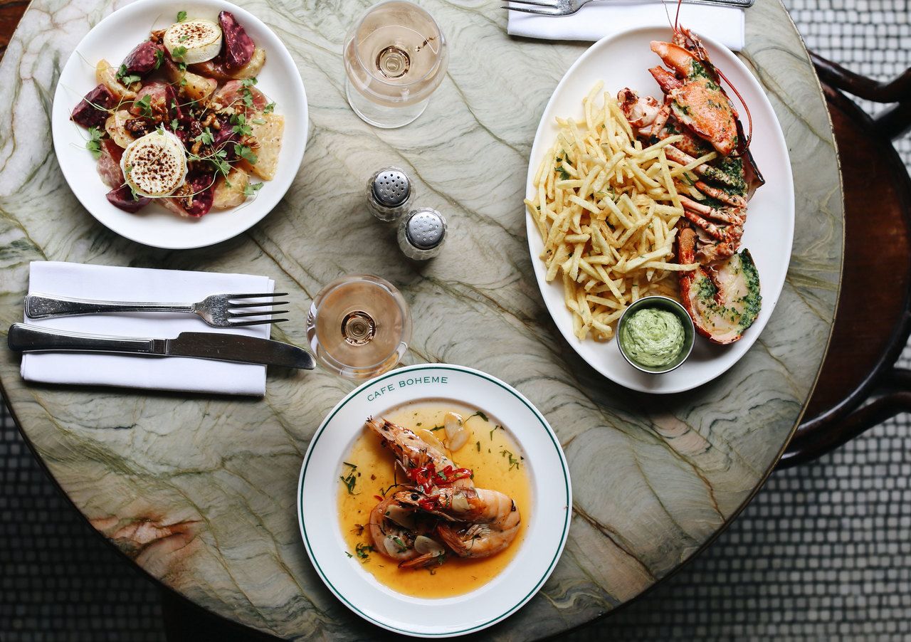 After 25 years of service, Cafe Boheme has been completely refurbished and has reopened in its original Soho location. We're serving traditional French classics such as soupe de poisson, steak frites and escargots with smoked bacon & garlic. Join us for hearty French food with simplicity, and live jazz every day.